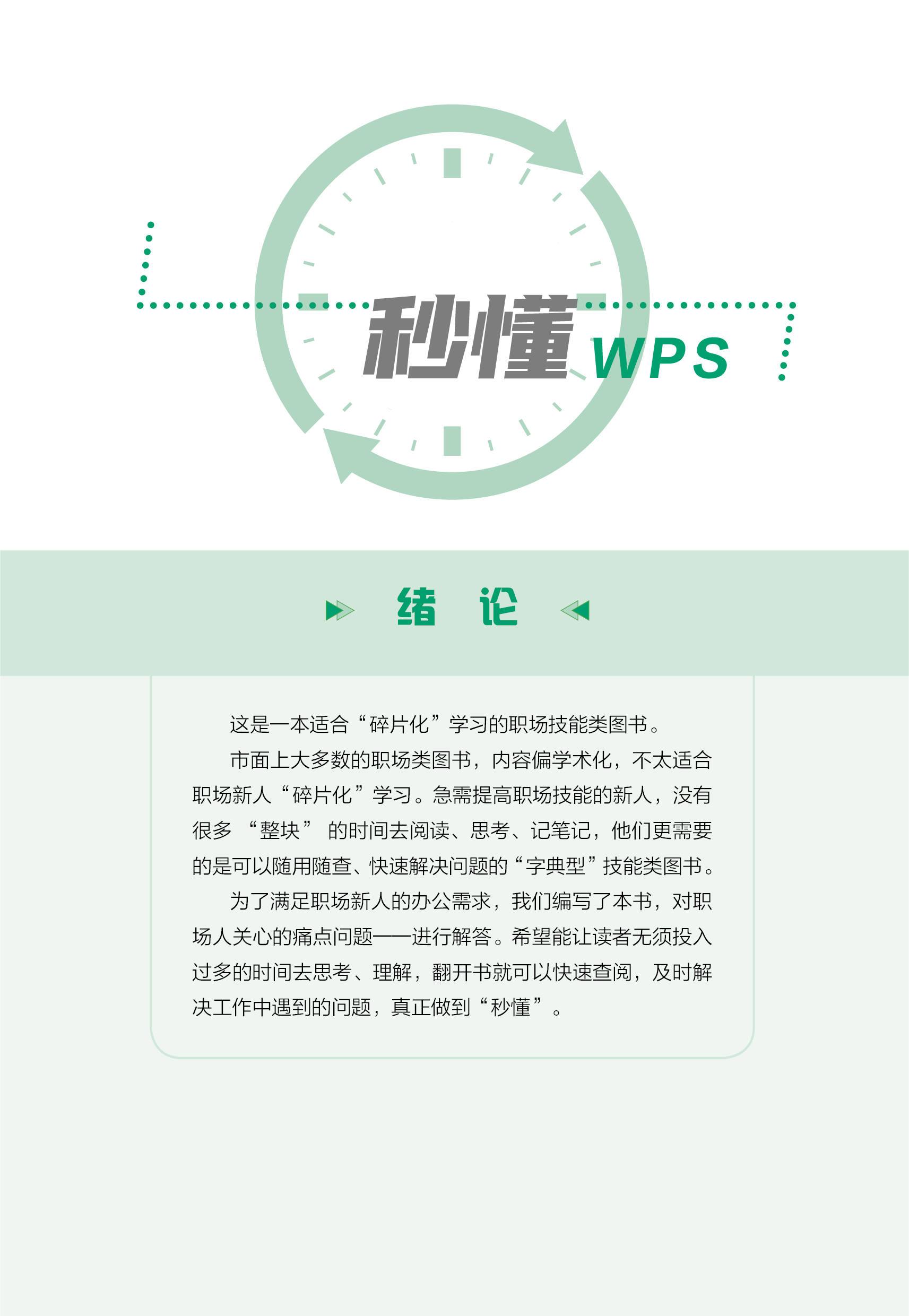本书具有“开本小、内容新、效果好”的特点,介绍职场新人需要掌握的“刚需”内容。本书在提供解决方案的同时,还介绍了软件的主要功能和使用技巧,让读者看完一节就有新的收获。