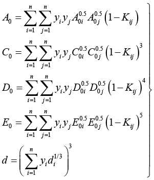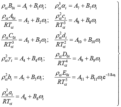 一些研究者在BWR状态方程的基础上进行了拓展,提出了更为复杂的高精度方程。1962年,Strobridge提出了16常数方程;1970年,Bender提出了20常数方程;1970年,Morsy提出了10常数方程;1973年,Jacobsen和Stewart提出了32常数方程;1975年,Lee和Kesler提出了12常数方程;1975年,Nishiumi和Saito提出了15常数方程;1985年,Schmidt和Wagner提出了32常数方程;1991年,Starling等人提出了53常数方程(AGA天然气方程),为流体状态方程的研究和应用开辟了新的道路。