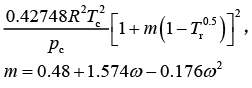 对参数 α 的修改使得预测轻烃蒸气压(特别是在 0.1MPa 以上)变得精确,这使得立方型状态方程成为预测在中压和高压下非烃类流体的气液平衡的重要工具,修改后的方程被称为SRK状态方程。