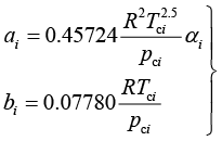 vdW 状态方程被提出后,需要确定方程的参数a、b。第一种方法是通过实验数据拟合,通常使用气相压力和气相或者液相密度;第二种方法是通过纯组分的临界参数和式(1-5)的临界状态确定。