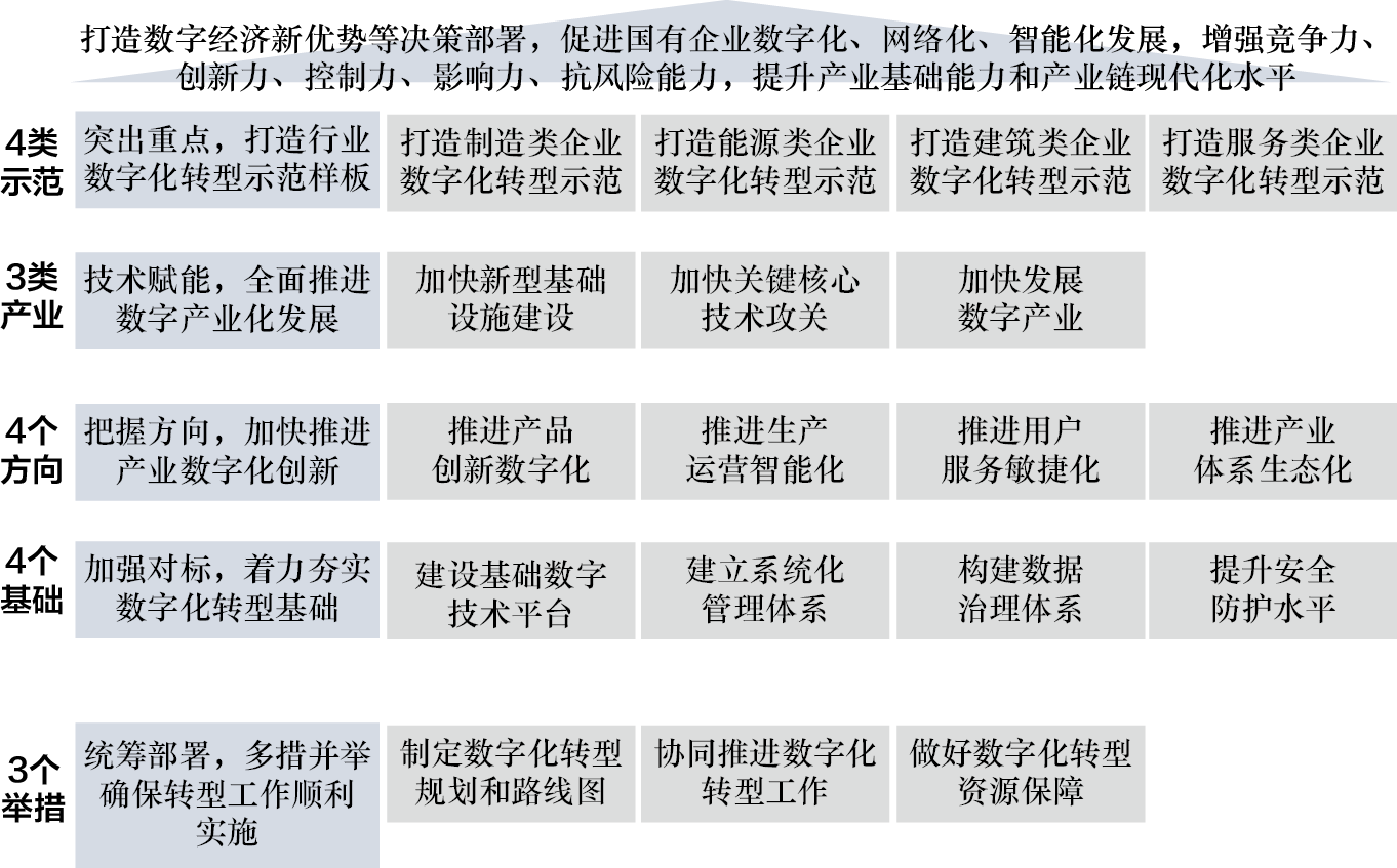 2020年,国务院国资委正式印发《关于加快推进国有企业数字化转型工作的通知》(以下简称《通知》)。《通知》内容概要如图1-1所示。