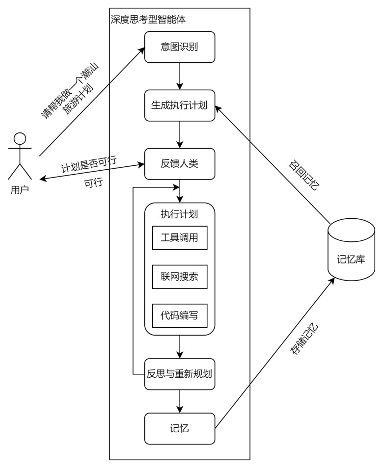 然而,人们很快发现,仅能调用工具的智能体在面对具有复杂逻辑的问题时力不从心。例如,“2024—2025赛季NBA总冠军球队的主教练的父亲叫什么名字?”这类问题需要依次完成“查询冠军球队→查询该队主教练→查找其父亲姓名”等多步推理。早期的工具调用型智能体往往因缺乏整体规划而中途迷失,甚至给出错误答‍案。